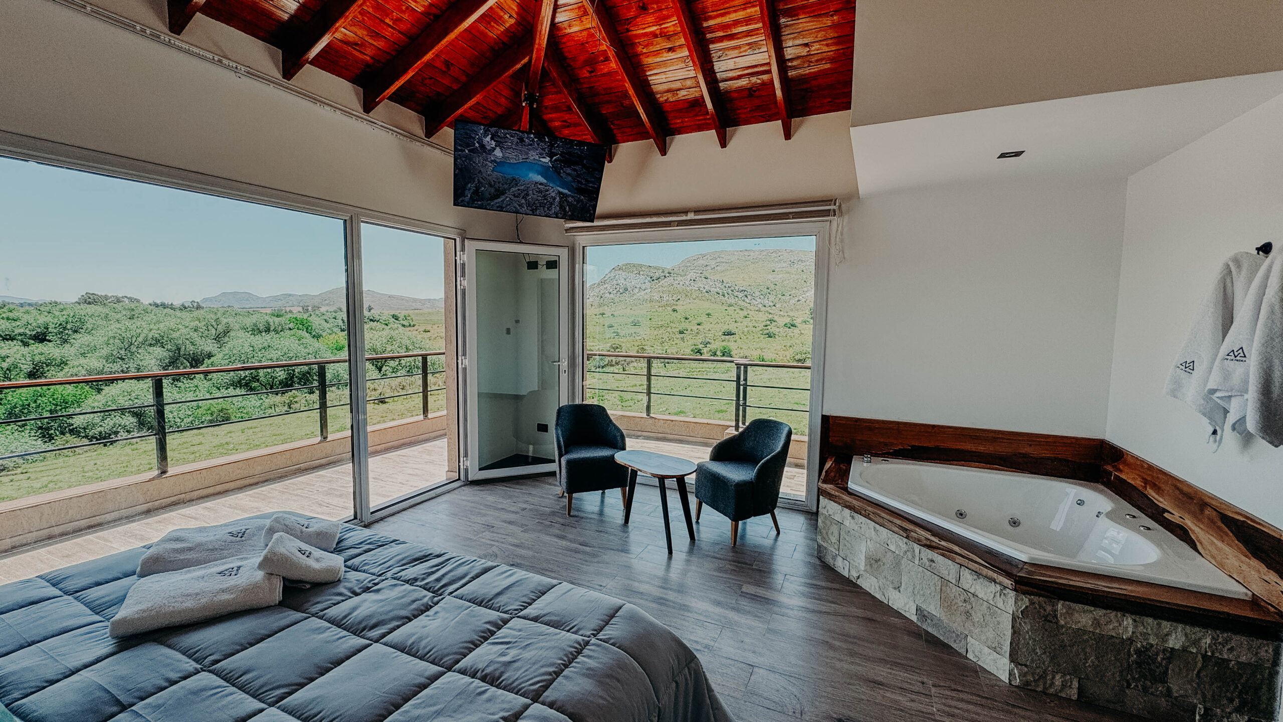 Nuestras exclusivas habitaciones están diseñadas para brindarte el máximo confort y tranquilidad. Equipadas con detalles de diseño y vistas privilegiadas a los paisajes serranos, cada espacio invita a relajarte y disfrutar de una experiencia única en Sierra de la Ventana.